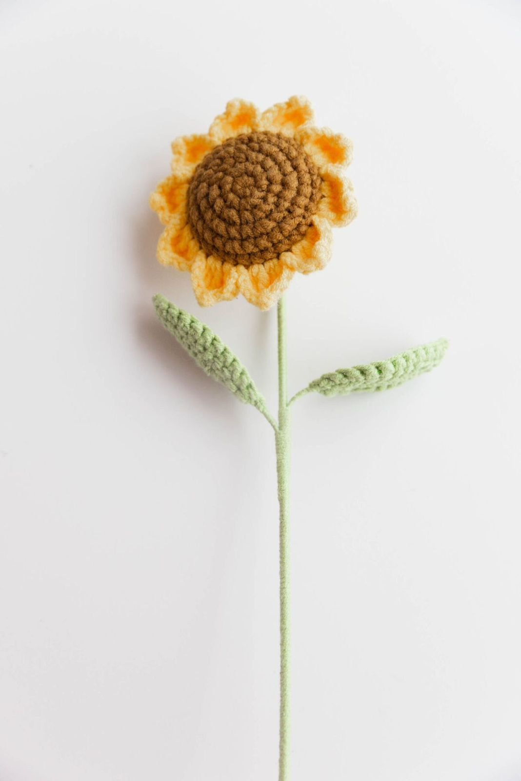 Bright, cheerful hand-crocheted sunflowers to add warmth and beauty to any space
